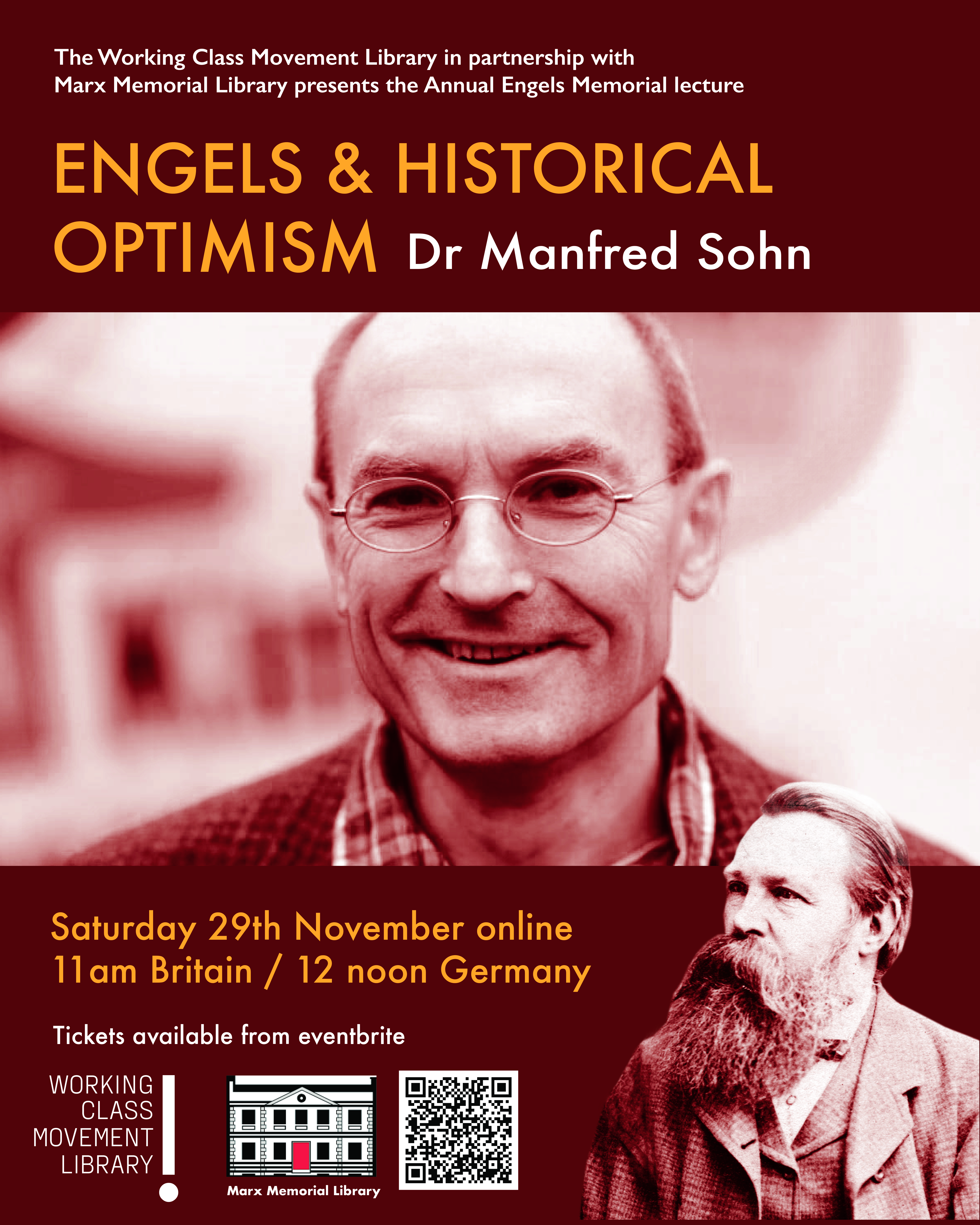 Dr. Manfred Sohn of the Marx-Engels Foundation delivers the annual Engels Memorial Lecture, organised jointly with the Working Class Movement Library